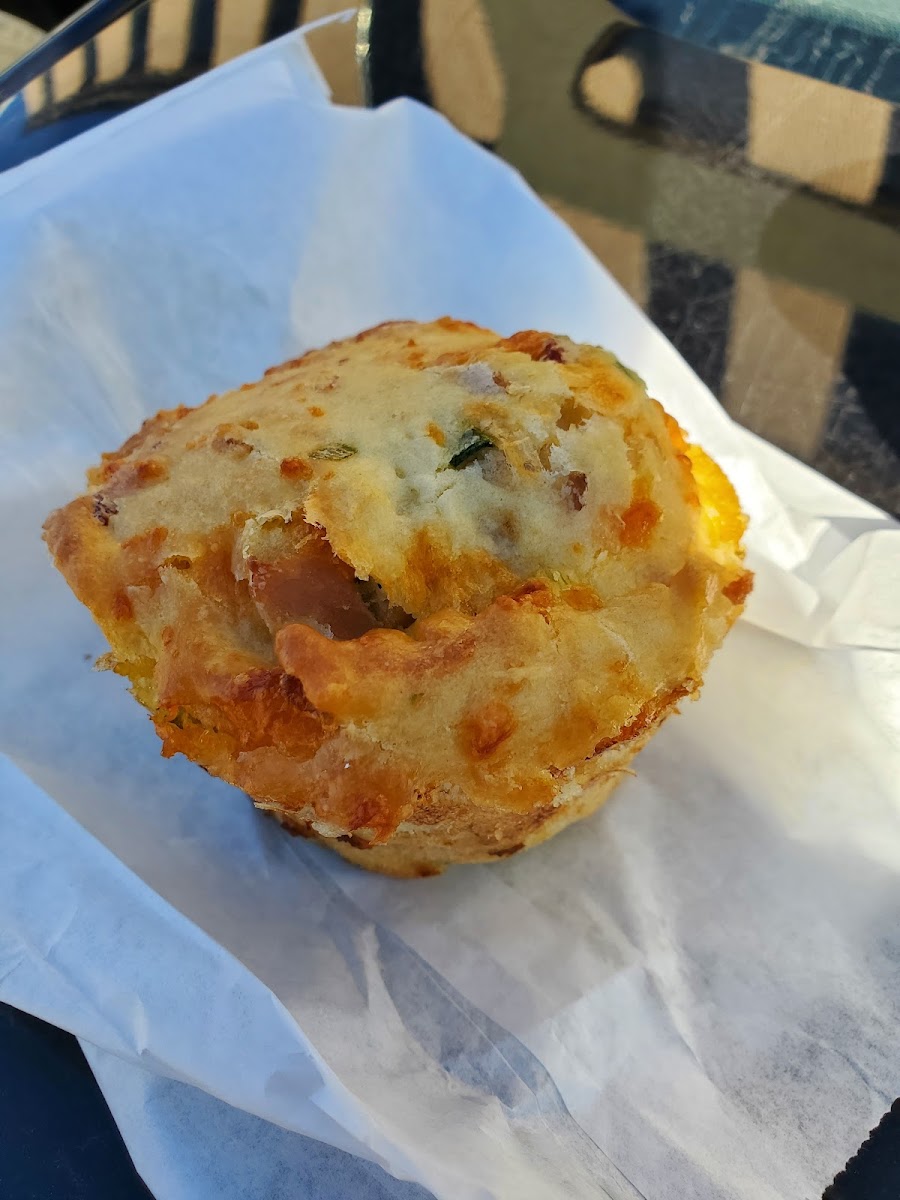I almost hate to give this café a great review, because the delicious sandwich muffins might be gone by the time I get there. Interned in the muffin is a baked egg, encompassed in a blanket of green onions, bacon, cheese and muffin. I make sure to stop by, whenever I'm on that side of the city. I buy them to share with coworkers, family and the breakfast muffins freeze well. The owner is nice and makes a variety of fresh muffins daily. Tried a carrot nut muffin with nuts and brown sugar, topped with an almond. The top texture was like a coffee cake. There wasn't any nuts in the middle, but I'd go just for the muffin tops if they sold them. I haven't tried the beverages, because I spend all my money on the baked goods.